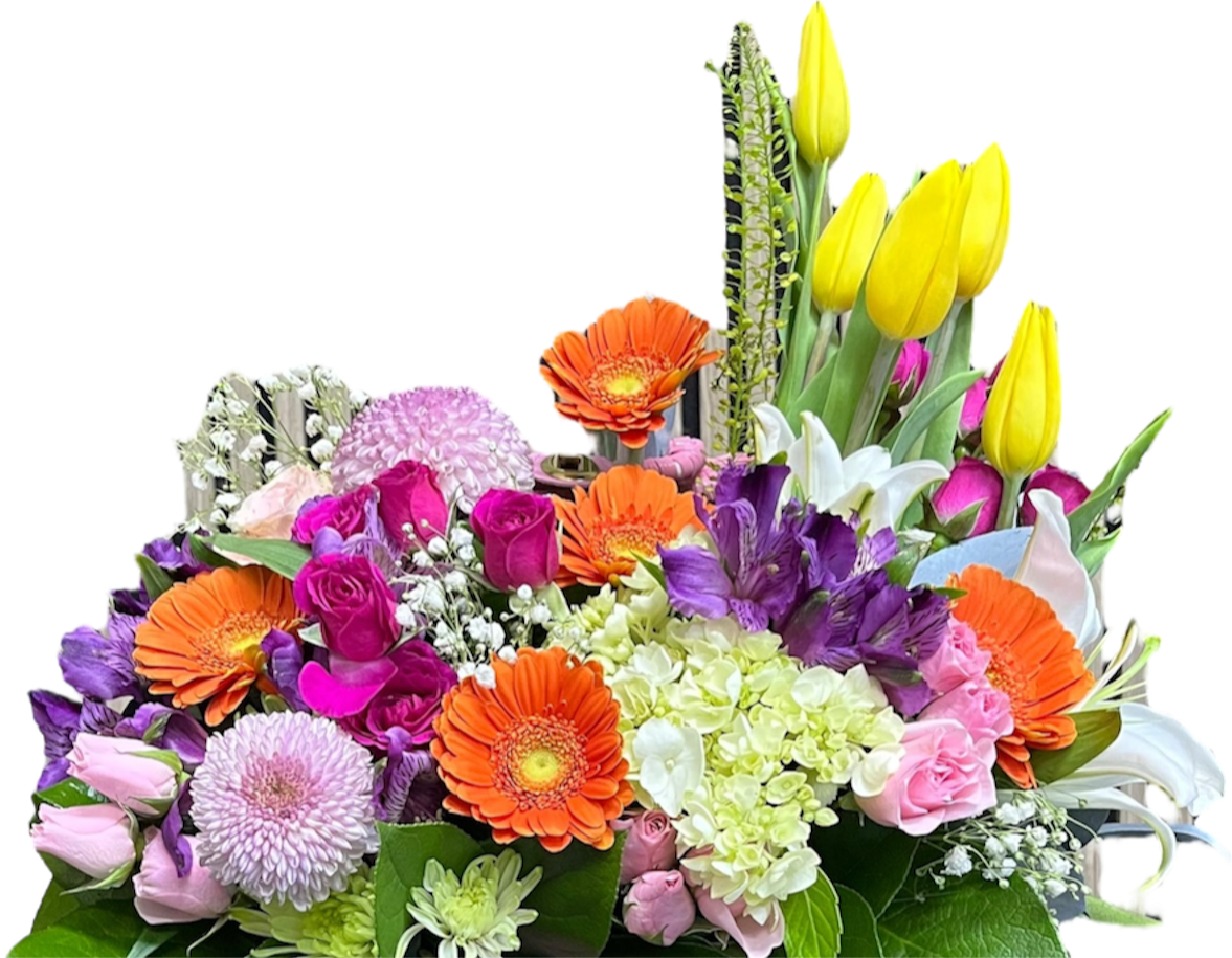 Flores mixtasTulipanes, lirios, hortensias y rosas (solo flores).