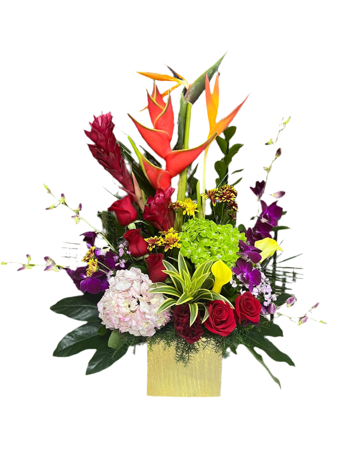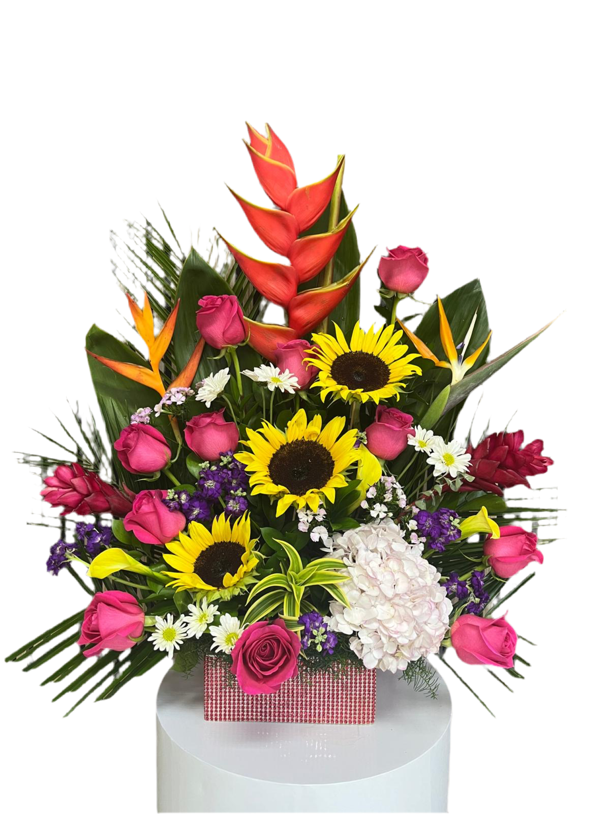 Déjate seducir por la belleza tropical de nuestro exclusivo ramo Tentación Exótica. Una composición única que combina los colores más vibrantes de la naturaleza para crear un regalo inolvidable.