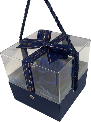 Deléitate con la belleza atemporal de nuestra Rosa Azul Oscura Preservada en una lujosa caja de regalo. 💙