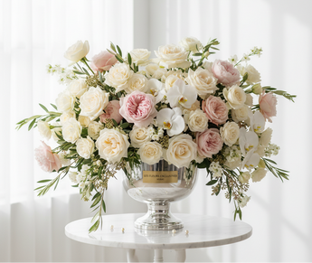Cada arreglo es meticulosamente diseñado por nuestros maestros floristas, utilizando únicamente flores premium de origen selectivo. Esta creación representa el pináculo del arte floral contemporáneo, donde cada pétalo cuenta una historia de lujo y distinción.