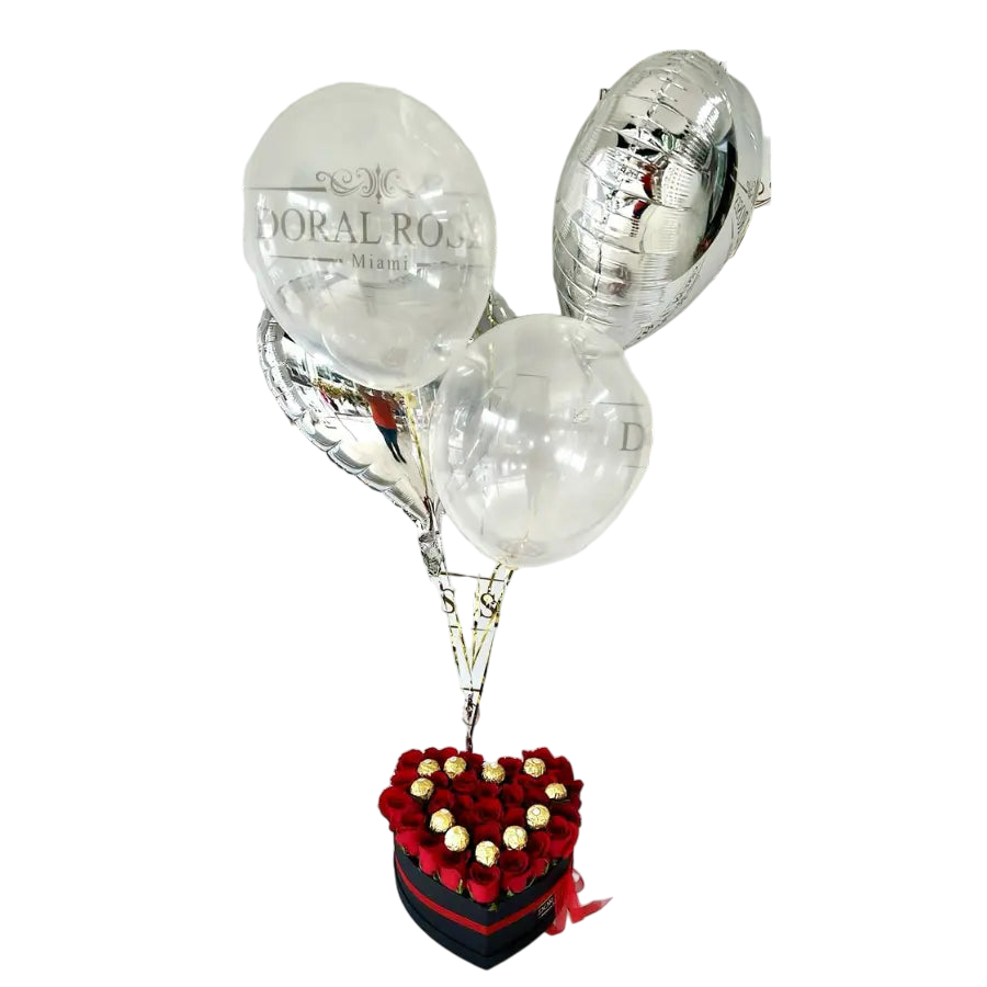 Caja Corazón con Rosas Rojas y Ferrero — Entrega Hoy Doral/Miami