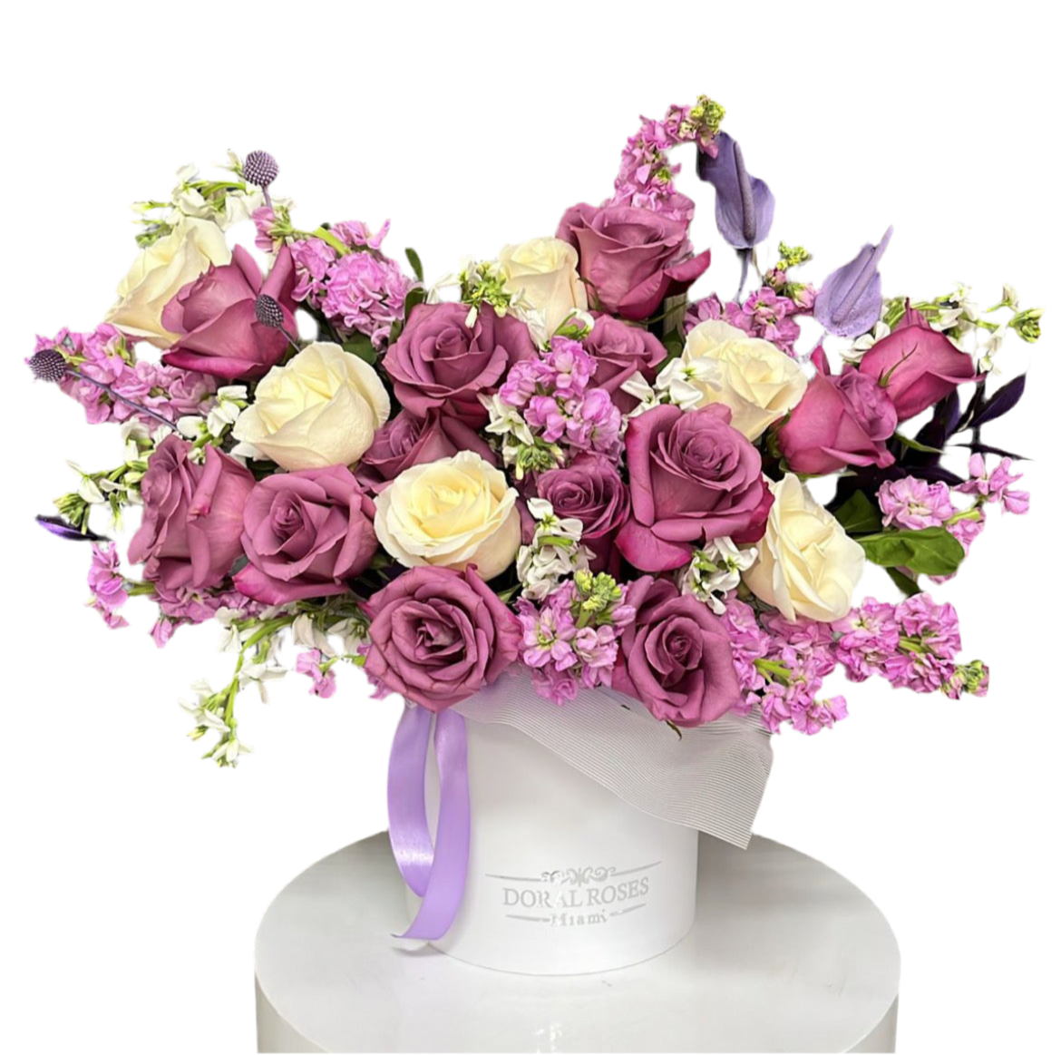 Luxury Flower Box Miami – Rosas Lavanda & Marfil | Entrega Hoy