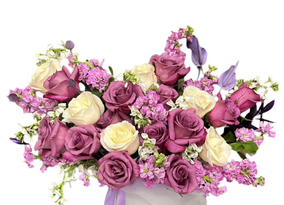 Experimenta la máxima sofisticación con nuestra exclusiva Luxury Flower Box, una creación premium que combina rosas lavanda y marfil en una presentación de lujo incomparable en Miami.
