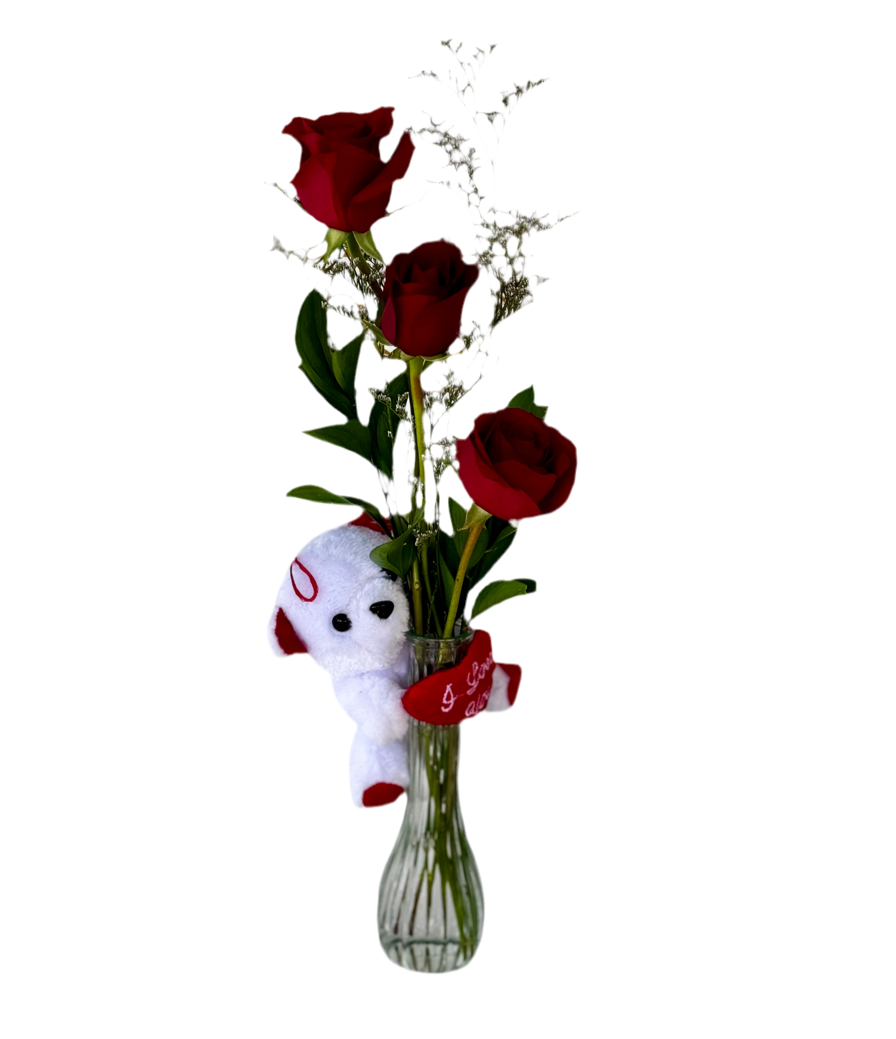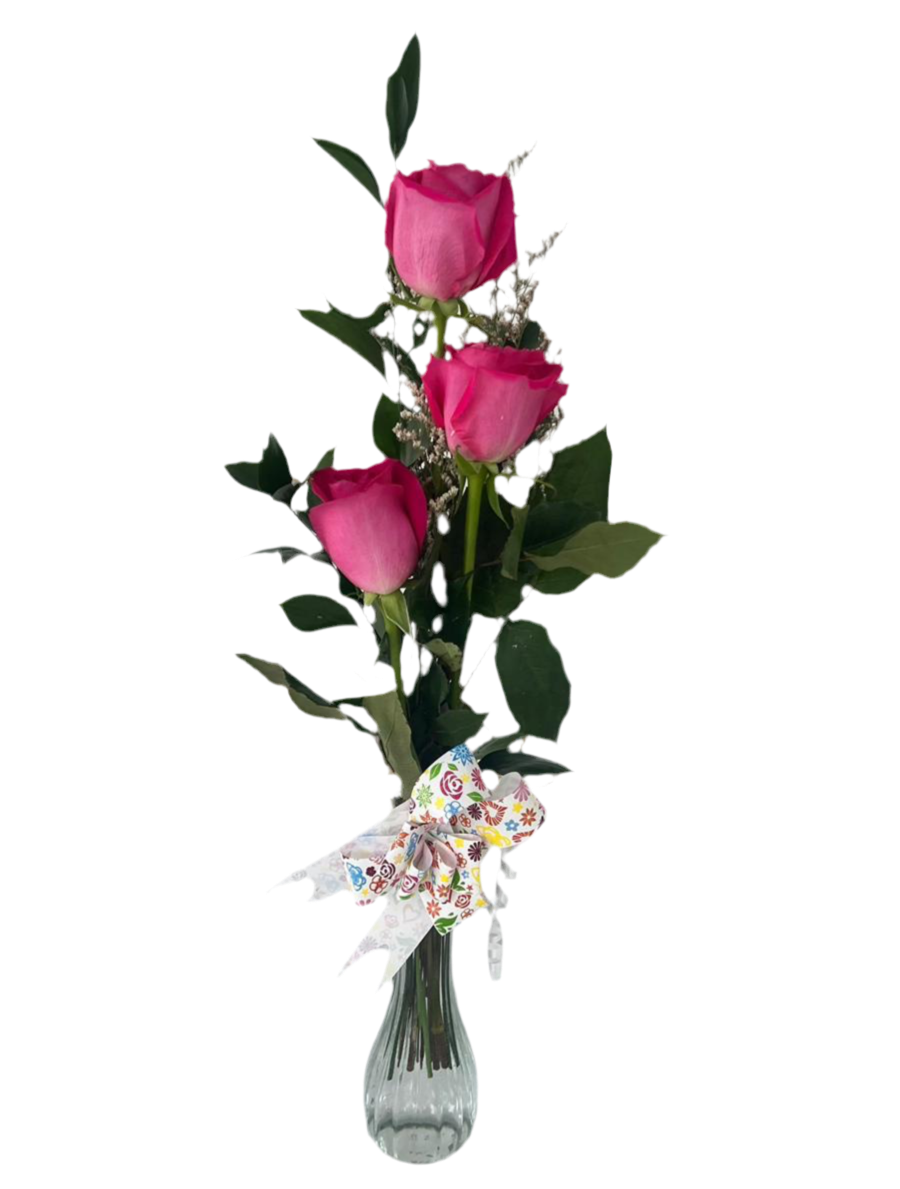 Este elegante arreglo presenta tres hermosas rosas de temporada cuidadosamente seleccionadas y presentadas en un jarrón decorativo. Ofrecemos entrega el mismo día en Miami, Doral y toda el área de Miami-Dade, perfecto para esos momentos en que necesitas un detalle urgente pero lleno de significado.