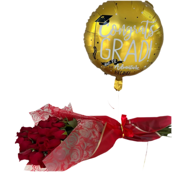 Bouquet 24 Rosas con Globo de Graduación Miami