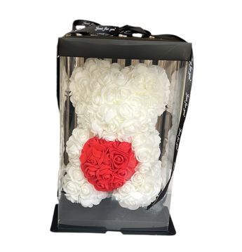 Disponibles en múltiples colores y tamaños. Ordena ahora y recibe tu oso de peluche con flores frescas hoy mismo en Miami.